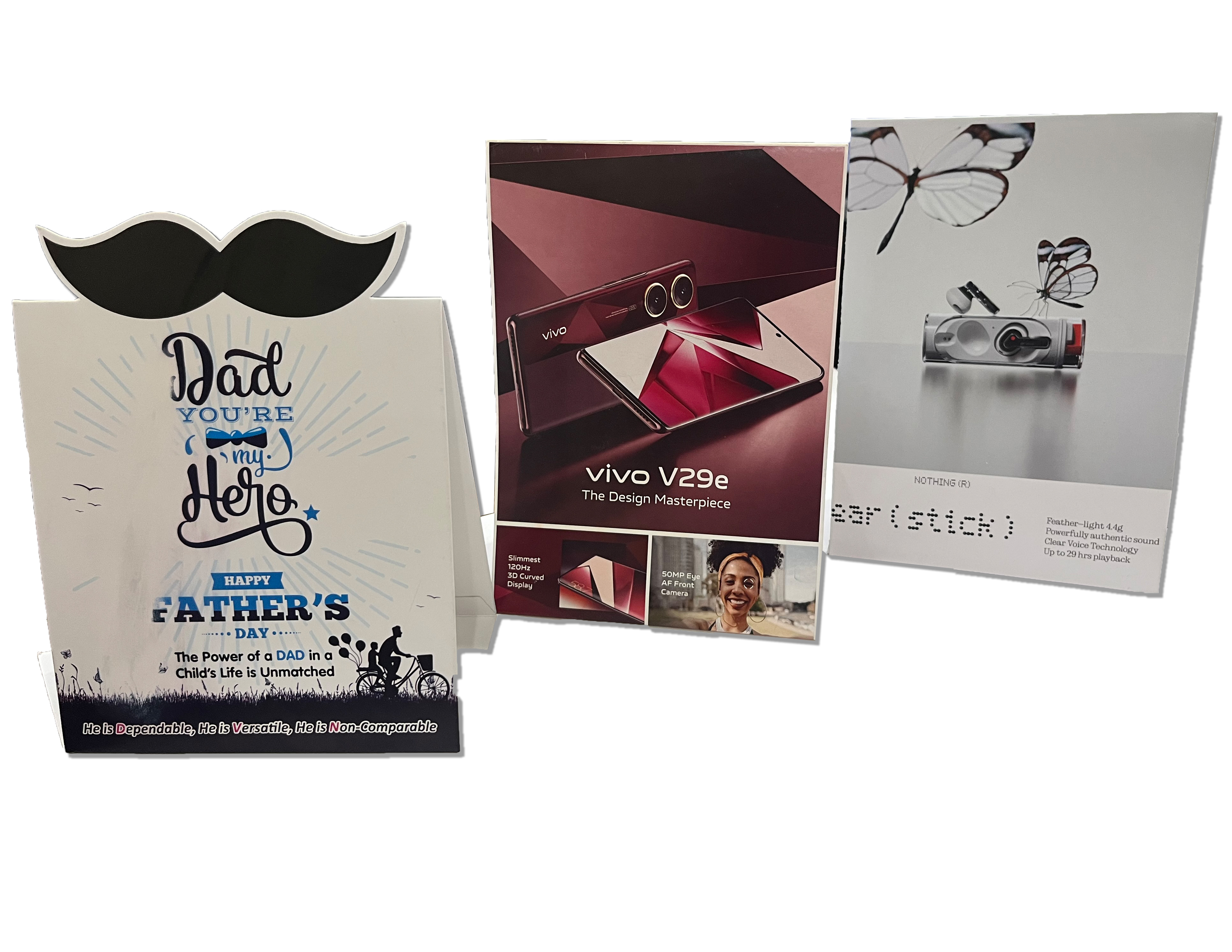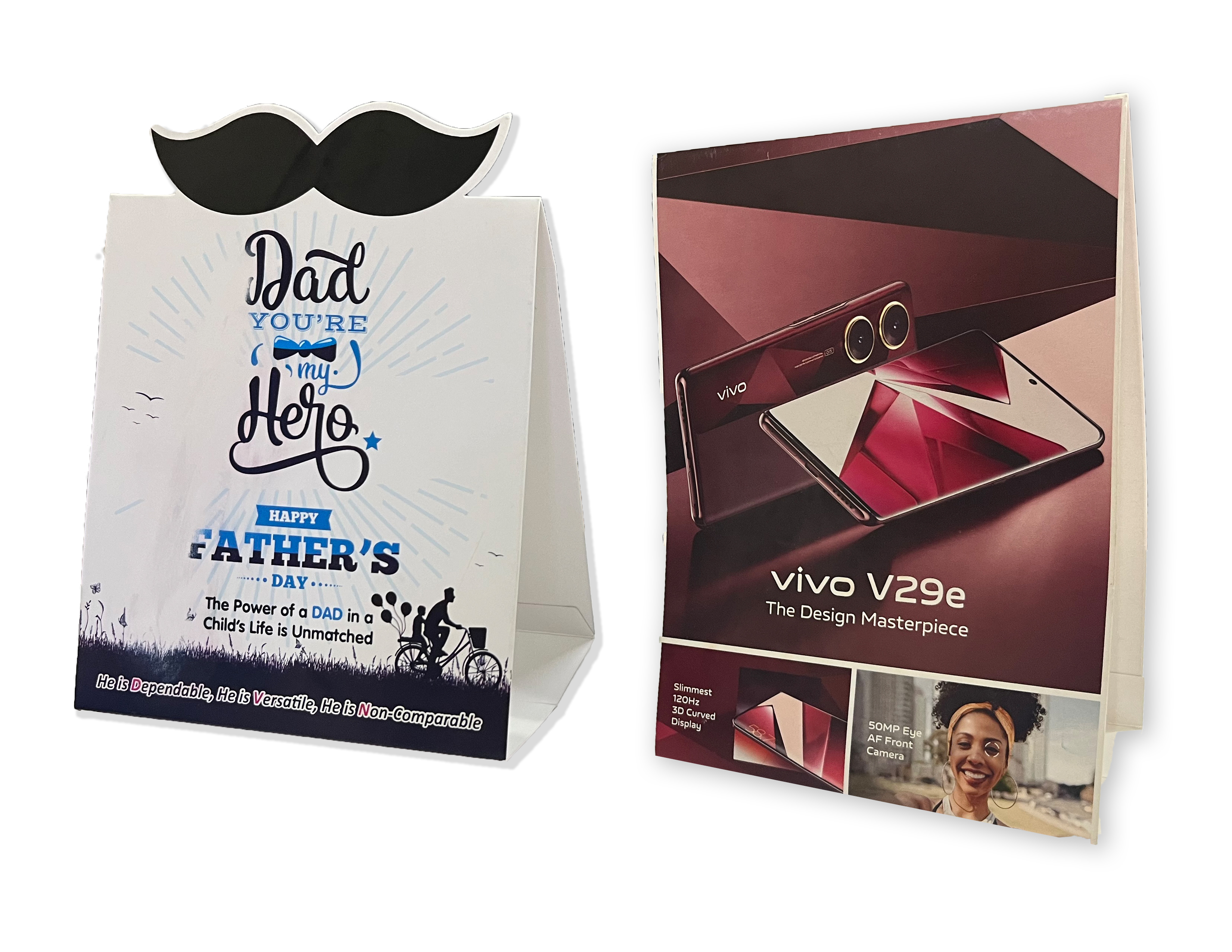 At VA Print Crafts Pvt. Ltd. , we take pride in being your trusted tent card manufacturer, dedicated to crafting eye-catching and versatile marketing materials. Tent cards are an effective and adaptable way to convey information, promote products, or enhance branding within various business settings.